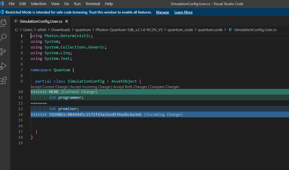 Pull 받고나서 Changes가 Stashed Changes로 이동하는 경우, 충돌하지 않은 파일도 같이 이동하게 되는데 파일 단위가 아닌 commit 블록 중 충돌하는 파일이 있으면 전체 파일이 Stashed Changes로 옮겨지고 로컬 레파지토리의 파일도 Pull 받은 내용으로 변경 된다. Changes에서 문제 되는 파일들 DiscardChanges 해 주면 Stashed Changes에서 Restore가 가능해지고 Restore 누르면 Stashed 됐던 파일들이 정상화 된다