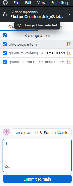 파일을 수정하면 깃허브데스크탑 좌측 changed탭에 변경 된 파일들이 나오고 커밋을 할 수있는 상태가 된다.
