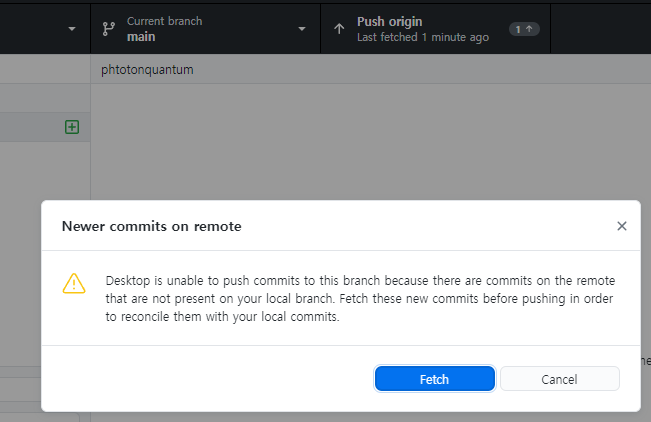 또한 Pull 대신 Fetch 라고 나오는 경우에는 변경 사항이 있으면 Fetch->Pull 로 바뀌고, 없으면 그대로 Fetch로